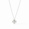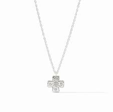 A hand-hammered cross pendant with golden bead accents and a shape which recalls early medieval crosses from England to Byzantium.