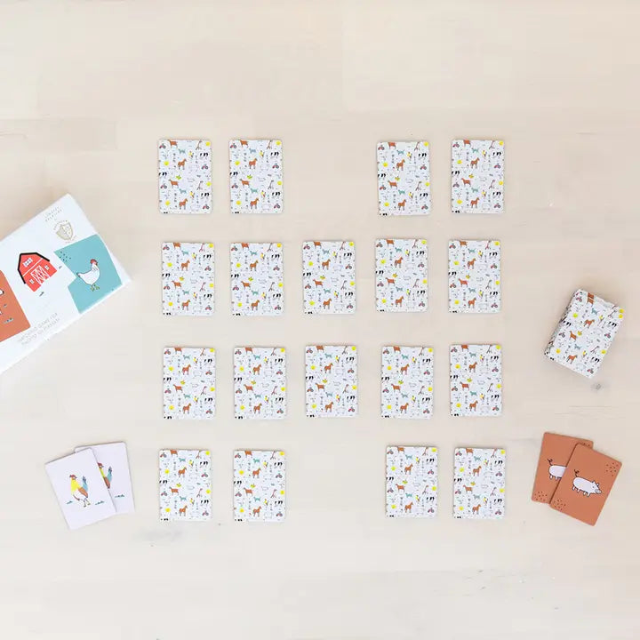 A classic memory-matching card game—with a farm animal twist! These cards are perfect for little hands. Have fun while encouraging memory, matching, and turn-taking skills. Whoever collects the most pairs wins!