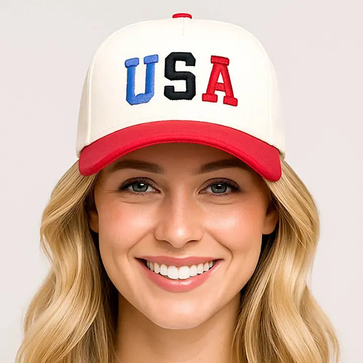 This USA embroidered baseball cap features bold raised lettering and a clean, structured silhouette designed for everyday wear and seasonal displays.