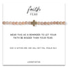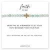 7" stretch bracelet—flexible fit for most wrists Crafted with genuine semiprecious gemstones Features a 5mm 12k gold-plated cross charm Includes a branded story card with the inspirational message: "Faith over fear. God is within her, she will not fail."