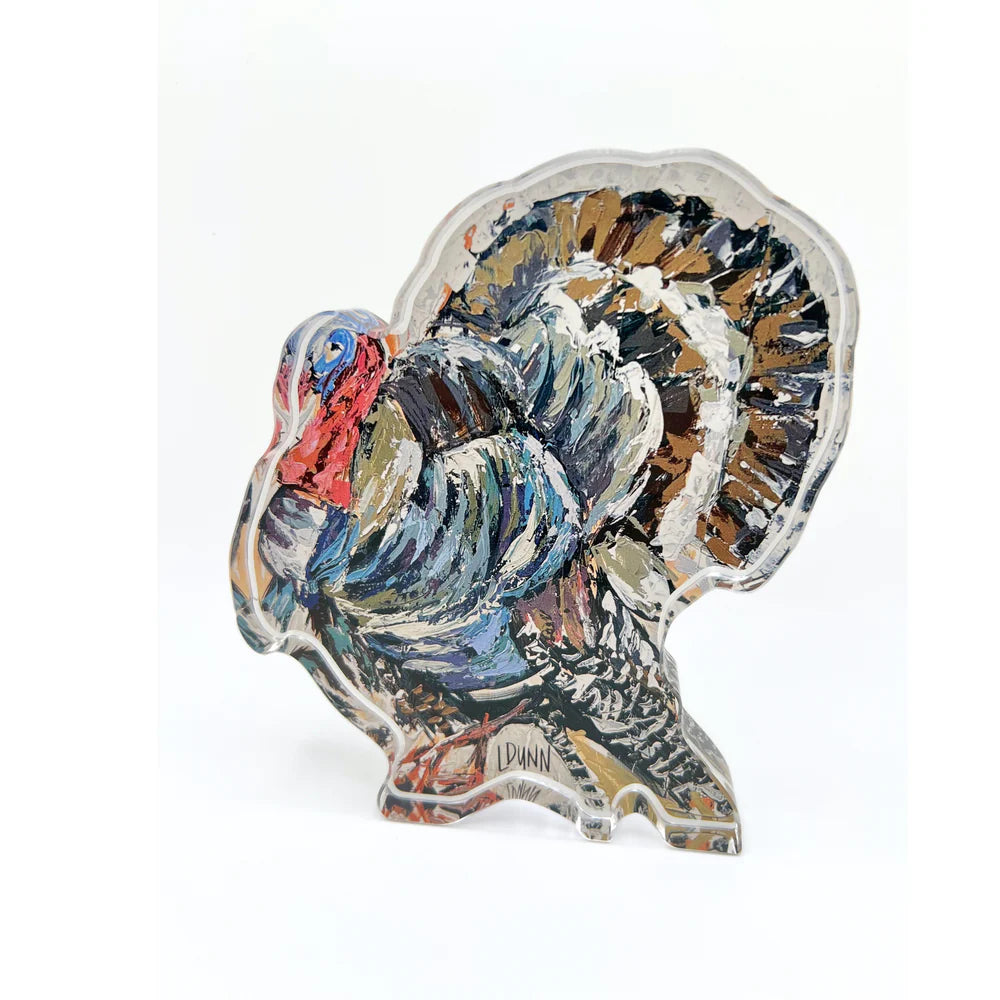 Our free-standing acrylic turkey makes the perfect addition to you Thanksgiving and fall decor! Add to a tabletop, shelf or even your Thanksgiving tablescape. Lauren's original artwork is printed directly onto .75" thick acrylic and cut to the shape of the art's silhouette for a unique and modern addition of art to your home!