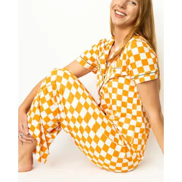 Get game day ready in the cutest checkerboard pajamas – the perfect cozy look for cheering on Tennessee in style!