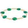 Hand beaded on high performance elastic for a slight stretch to easily roll on and off your wrist