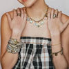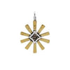 The Celebrate Now Pendant is a modern starburst featuring Brass, Sterling Silver and Crystal. (Let’s party.)