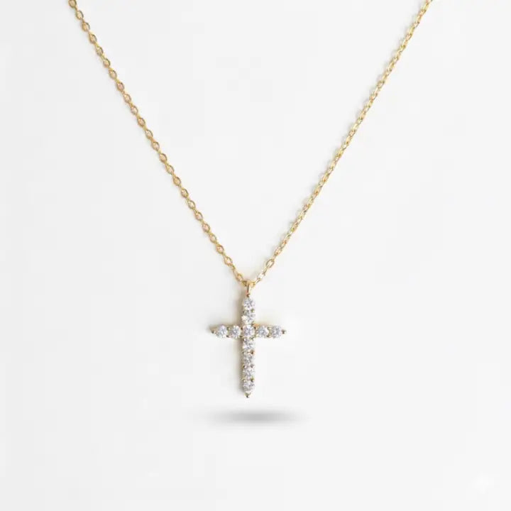 Radiate subtle elegance with the 18K Gold Dipped Sterling Silver Dainty Cross Necklace, a timeless piece that blends faith with refined style. Featuring a delicate cross pendant accented with shimmering stones, this necklace is the perfect everyday reminder of grace and beauty.