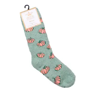 Looking for a cozy fall gift? Check out these delightful women's pumpkin-themed snuggle socks in a charming light green and orange color combination. They come in a versatile one-size-fits-all, making them the perfect treat for anyone looking to stay warm and stylish this season.